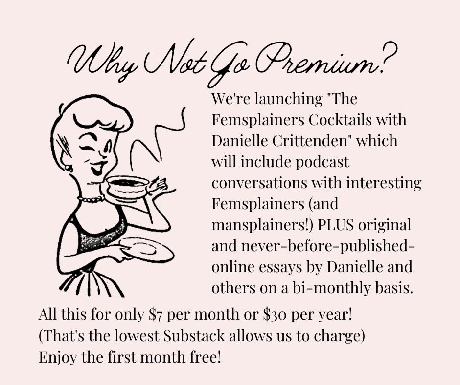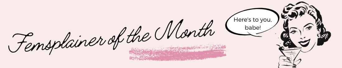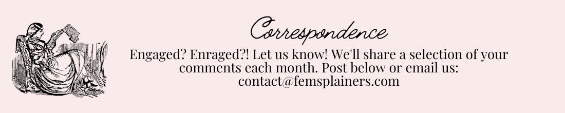 Thank you for reading! If you’d like to try our mid-month Premium newsletter, including a podcast conversation with a Femsplainer of note, please subscribe. We’re grateful for any and all support of our content.